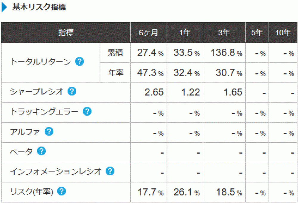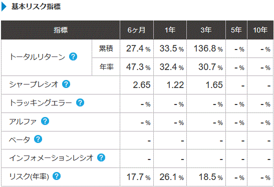 これはTracers クローバル2倍株のリスク指標。