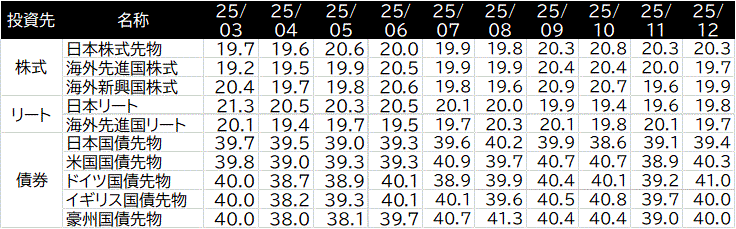 デリバティブの利用は国内株式と債券に限定しており、リスクの高いアセットには現物資産を採用。