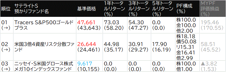今回は。世間さまの投資傾向と、トワナナさんちの2つのサテライトをランキング形式で眺めるだけの2026年3月のお話。